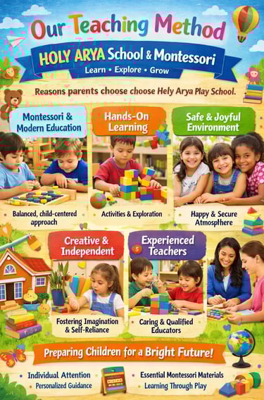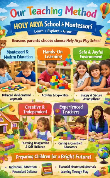 HOLY ARYA School & Montessori follows a balanced approach of Montessori principles and modern education to ensure every child develops naturally and confidently.